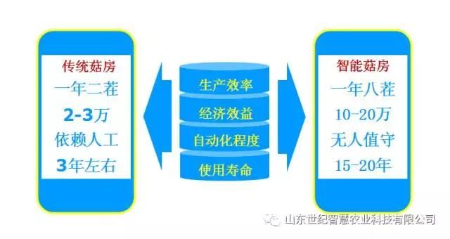 智能菇房與傳統(tǒng)菇房相比,無論是生產(chǎn)效率、年產(chǎn)值還是自動化程度、使用壽命,無疑都得到了極大提升,具體數(shù)值如下:
