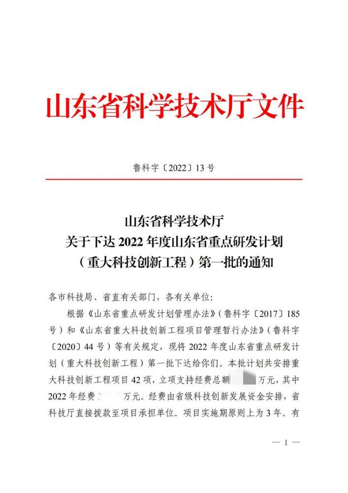 熱烈祝賀我公司成功立項(xiàng)山東省重大科技創(chuàng)新工程重點(diǎn)研發(fā)計(jì)劃